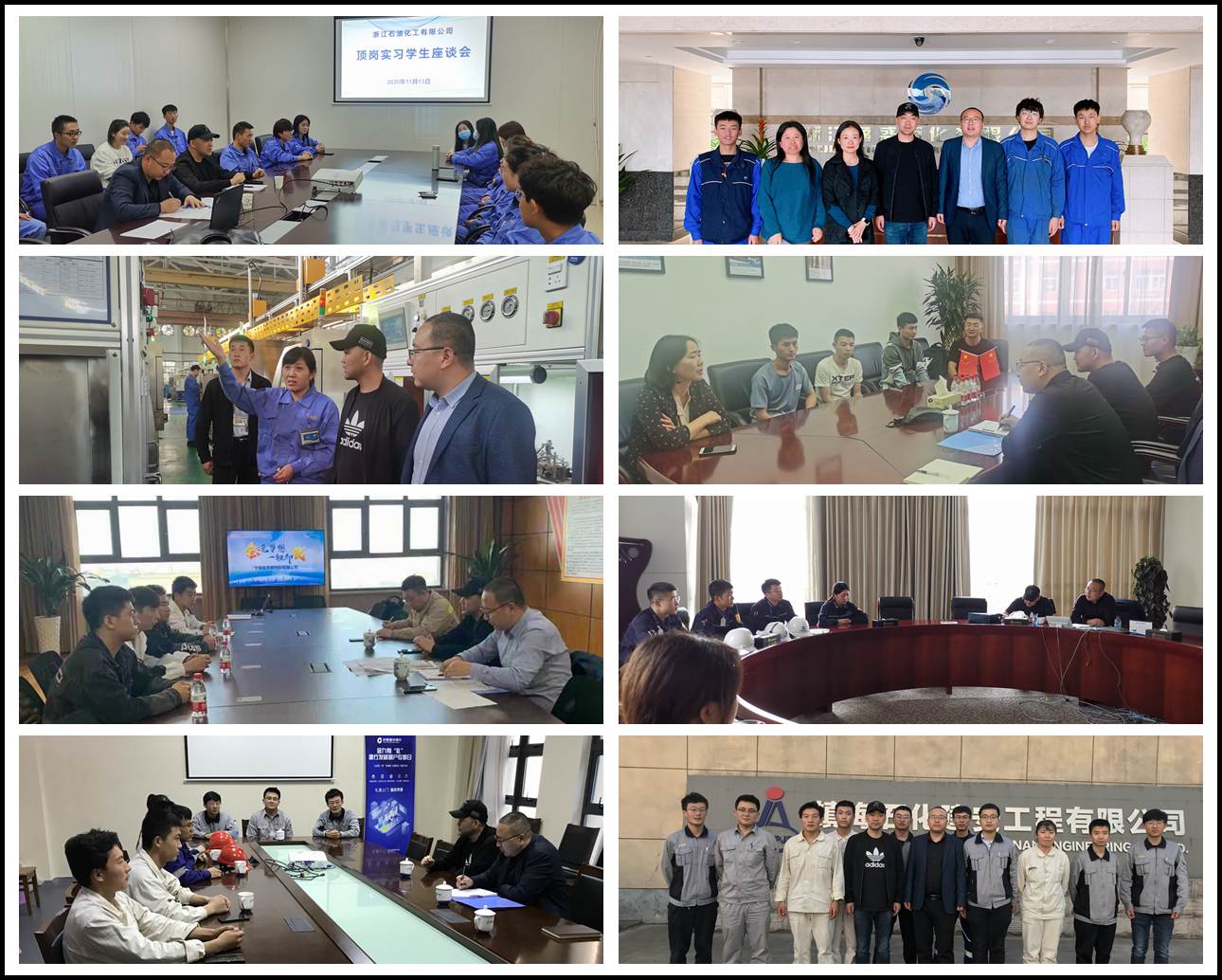 顶岗实习工作检查方式为实地检查和座谈交流,分别走访了浙江石油化工有限公司、浙江鼎盛石化工程有限公司、 人本股份有限公司、江苏远洋科技有限公司、苏州贝瑞斯曼信息科技有限公司、镇海石化建安工程有限公司、宁波镇海炼化利安德化学有限公司、宁波中金石化有限公司、浙江逸盛石化有限公司、宁波巨化化工科技有限公司、宁波金发新材料有限公司、万华化学(宁波)有限公司。检查内容主要是录用2021届毕业生人数,目前顶岗情况;顶岗实习计划落实情况,岗位工作安排情况;校企双方指导老师工作开展情况;员工岗前安全培训及实习保险落实情况;岗位工作时间、补助及食宿安排情况;学生现阶段思想状况调研及教学反馈情况;企业对顶岗实习学生的评价及下一阶段用人需求等情况。